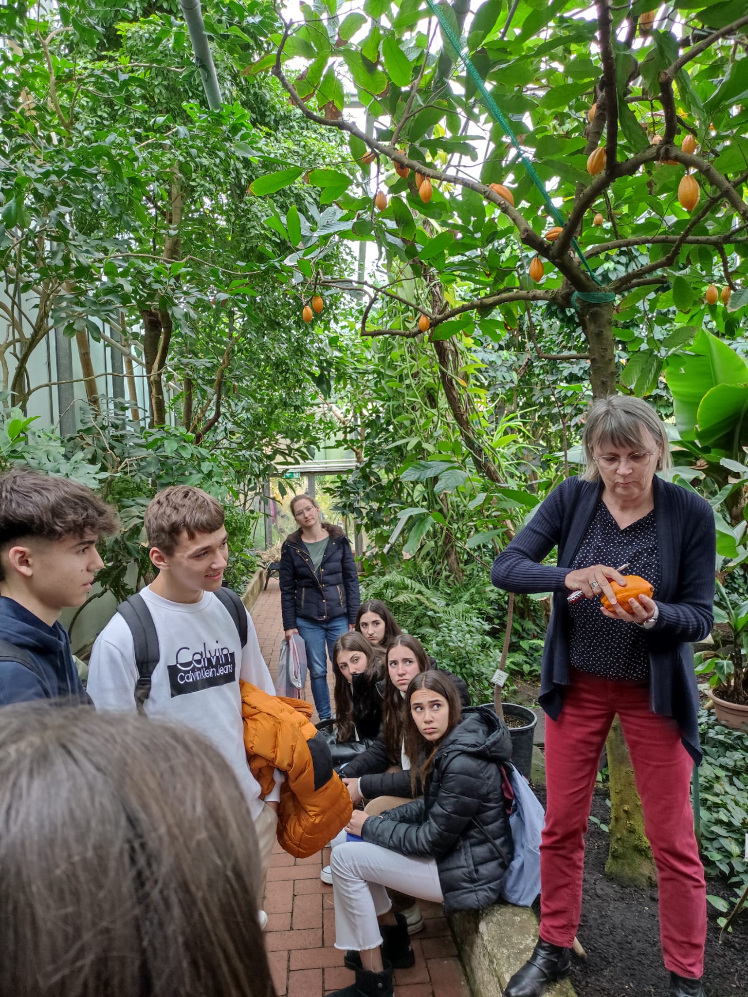 Am Dienstag besuchten wir den neuen Botanischen Garten in Marburg. Dort haben wir uns in zwei gemischte Gruppen aufgeteilt. Es gab eine Rallye durch die Gewächshäuser, wir haben Schokocreme selber hergestellt und viel über Nachhaltigkeit gelernt. Danach ging es noch Marburg in die Oberstadt. Eigentlich war geplant, den Grimm-Dich-Pfad zu gehen und die Elisabethkirche zu besuchen, was aber wegen des schlechten Wetters leider nicht möglich war. Dafür gab es eine längere Mittagspause in der Stadt. Einige von uns sind zusammen mit ihren Austauschpartnern Essen gegangen. Damit endete der gemeinsame Ausflug der Gruppe und es ging zurück in die Familien.