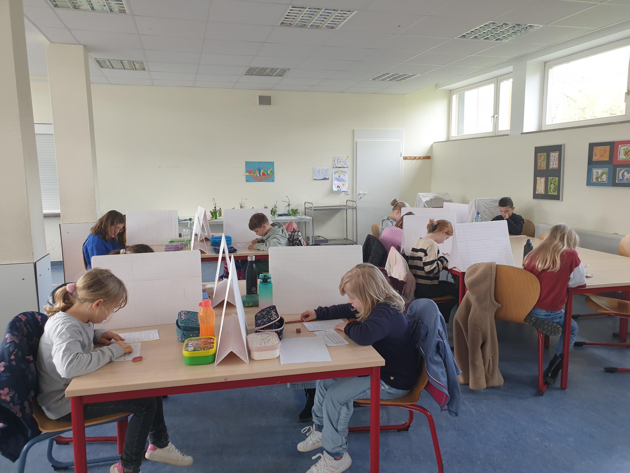 Auch in diesem Jahr hat unsere Schule am Mathematik-Känguru Wettbewerb teilgenommen. Aus der Grundschule haben sich 49 Schüler und Schülerinnen (3. und 4. Klasse) und 5 Schüler und Schülerinnen aus der Jahrgangsstufe 6 angemeldet, um am mathematische Multiple-Choice-Wettbewerb der besonderen Art teilzunehmen. Stattgefunden hat der Wettbewerb deutschlandweit am 18. April 2024 in der 3. und 4. Stunde.