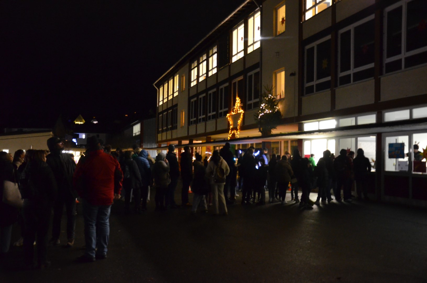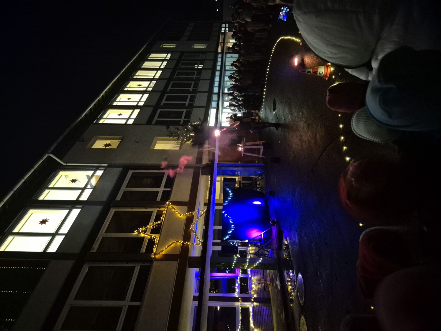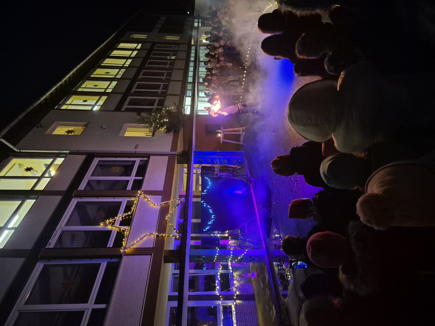 Pünktlich um 16.00 Uhr verzog sich die Regen, es hörte auf zu stürmen und unser Fest konnte beginnen. Jede Klasse trug zum Gelingen des Fests bei und die Schulgemeinde konnte das Fest in vollen Zügen genießen. Der Nikolaus vom Förderverein, Lichter, köstlicher Duft, Mitmachangebote, Musik, Tanz, Spezialitäten und Gebäck sowie eine tolle Stimmung rundeten unser Lichterfest ab und ein großartiger Feuerkünstler komplettierte diese tolle Veranstaltung. Hervorzuheben ist auch die Beteiligung des Fördervereins, der uns im ganzen Jahr finanziell unterstützt. Der Weihnachtsbaum, fachmännisch auf dem Vordach montiert und vom OBI gesponsert, wird uns auch die nächsten Tage an dieses Event erinnern.