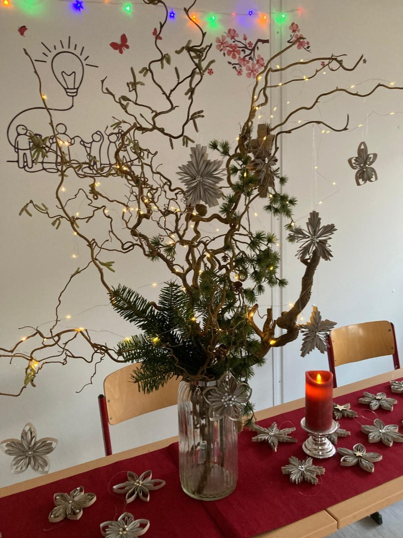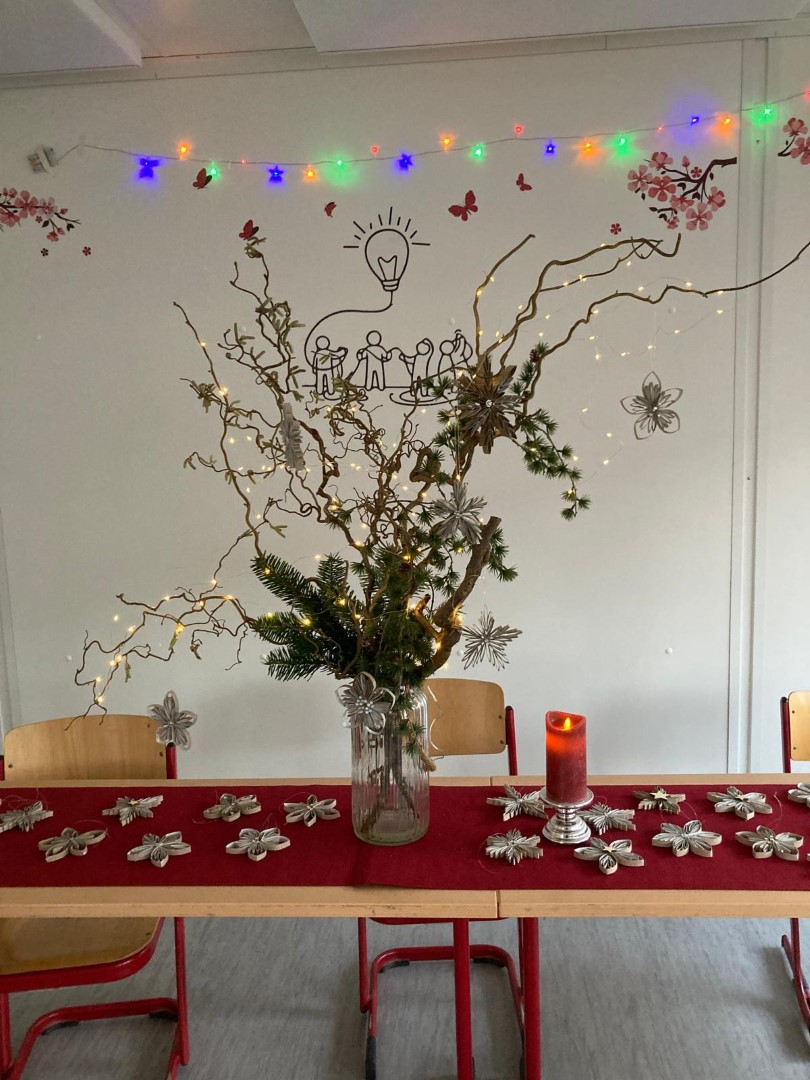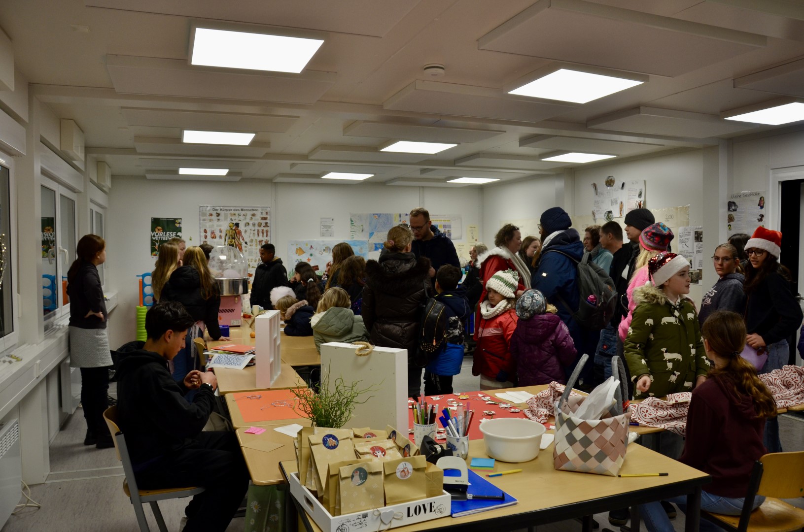 Pünktlich um 16.00 Uhr verzog sich die Regen, es hörte auf zu stürmen und unser Fest konnte beginnen. Jede Klasse trug zum Gelingen des Fests bei und die Schulgemeinde konnte das Fest in vollen Zügen genießen. Der Nikolaus vom Förderverein, Lichter, köstlicher Duft, Mitmachangebote, Musik, Tanz, Spezialitäten und Gebäck sowie eine tolle Stimmung rundeten unser Lichterfest ab und ein großartiger Feuerkünstler komplettierte diese tolle Veranstaltung. Hervorzuheben ist auch die Beteiligung des Fördervereins, der uns im ganzen Jahr finanziell unterstützt. Der Weihnachtsbaum, fachmännisch auf dem Vordach montiert und vom OBI gesponsert, wird uns auch die nächsten Tage an dieses Event erinnern.