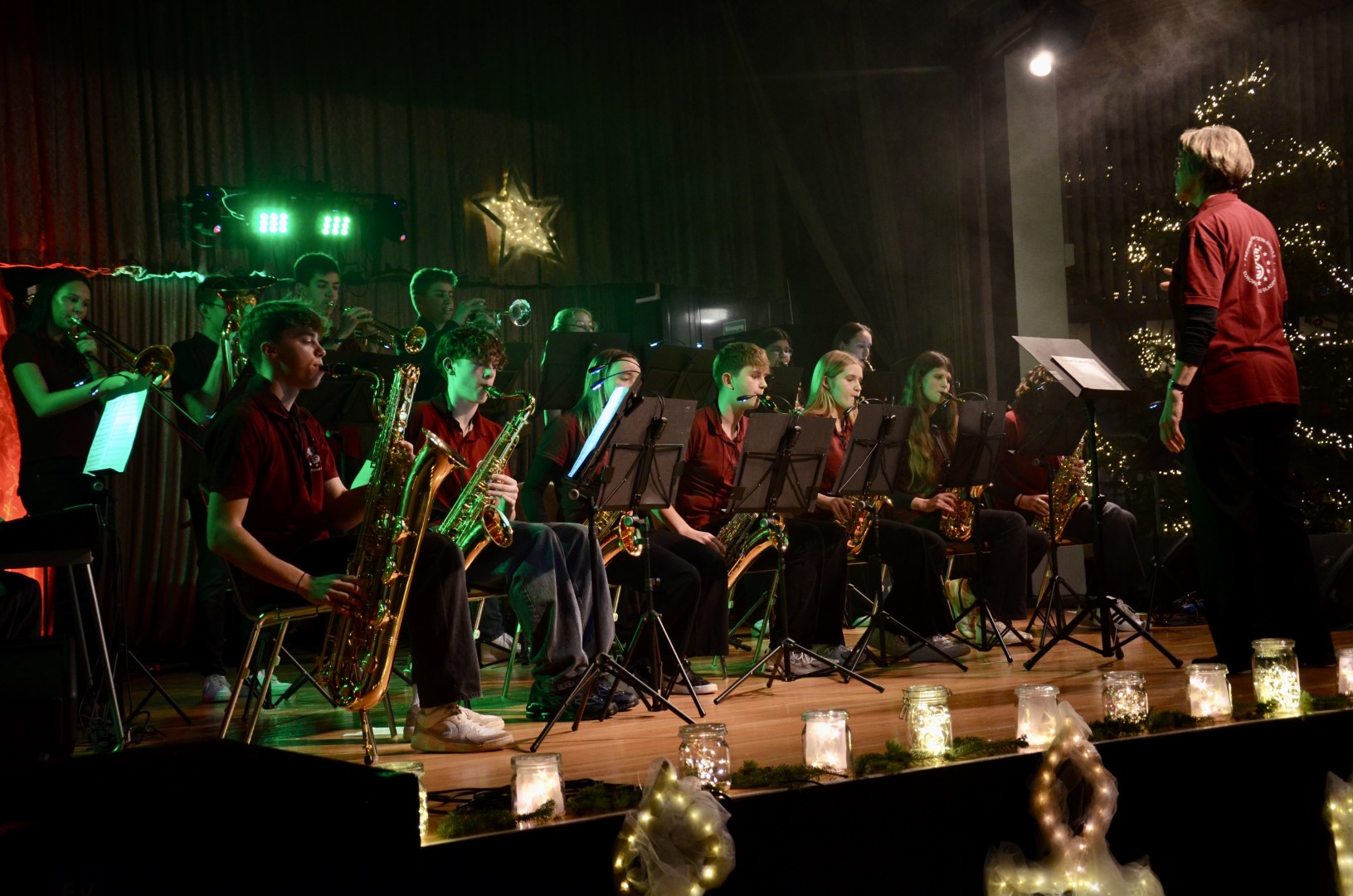 Das große Finale übernahm die Big Band, die mit einer Auswahl an fünf festlichen Stücken den Weihnachtsmusikabend ausklingen ließ. Den professionellen Auftritt haben sie mit Christina Guhl einstudiert und dem Publikum einen Einblick in ihr musikalisches Können geliefert.