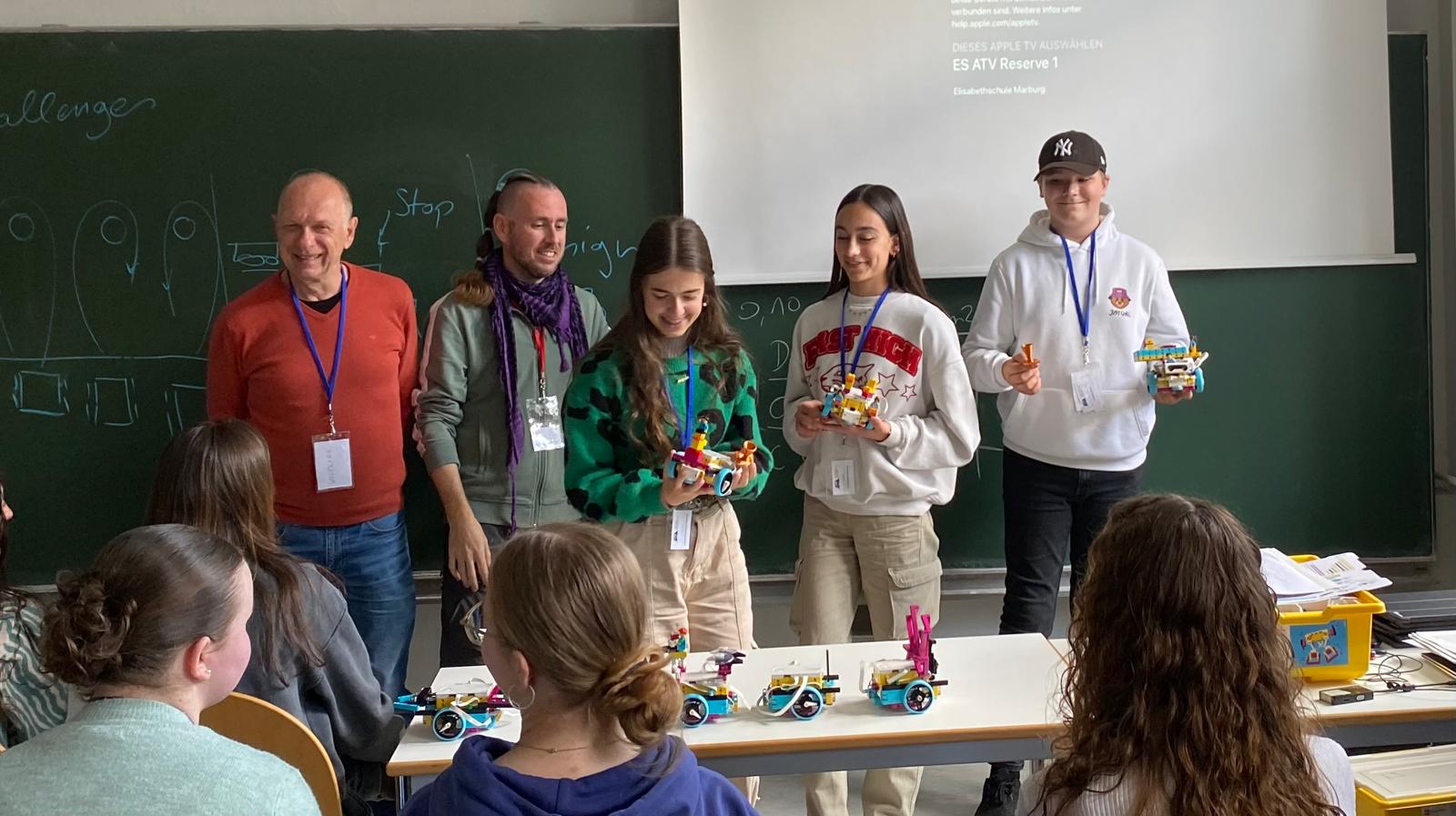 Vorab jedoch stand die Gruppe selbst im Fokus: Durch Spiele lernten sie sich näher kennen und auch die Gebäude der Europaschule wurden erkundet. Im Anschluss fand der erste inhaltliche Austausch über das Thema in Form von vorbereiteten Präsentationen über KI (Künstliche Intelligenz) sowie Technologien der Zukunft statt. Am Folgetag besuchten die Schülerinnen und Schüler die Physik der Marburger Universität. Hier erwarteten sie spannende Workshops des Schüler:innen Forschungszentrums, in denen unter anderem Lego-Roboter gebaut wurden. Die schöne Stadt Marburg mit ihren Sehenswürdigkeiten wurde im Anschluss im Rahmen einer Stadtführung, welche die Schülerinnen und Schüler aus Gladenbach vorbereitet hatten, erkundet. Im Frankfurter Museum für Kommunikation beschäftigte sich die Gruppe am Mittwoch mit „Fake News“. Dazu überprüften sie vorab ihr Gespür im Hinblick auf Falschmeldungen, bevor sie im Anschluss selbst einmal „Fake News“ erstellen durften. Eindrücke aus der Stadt Frankfurt sammelten die Schülerinnen und Schüler in der daran anschließenden Freizeit.