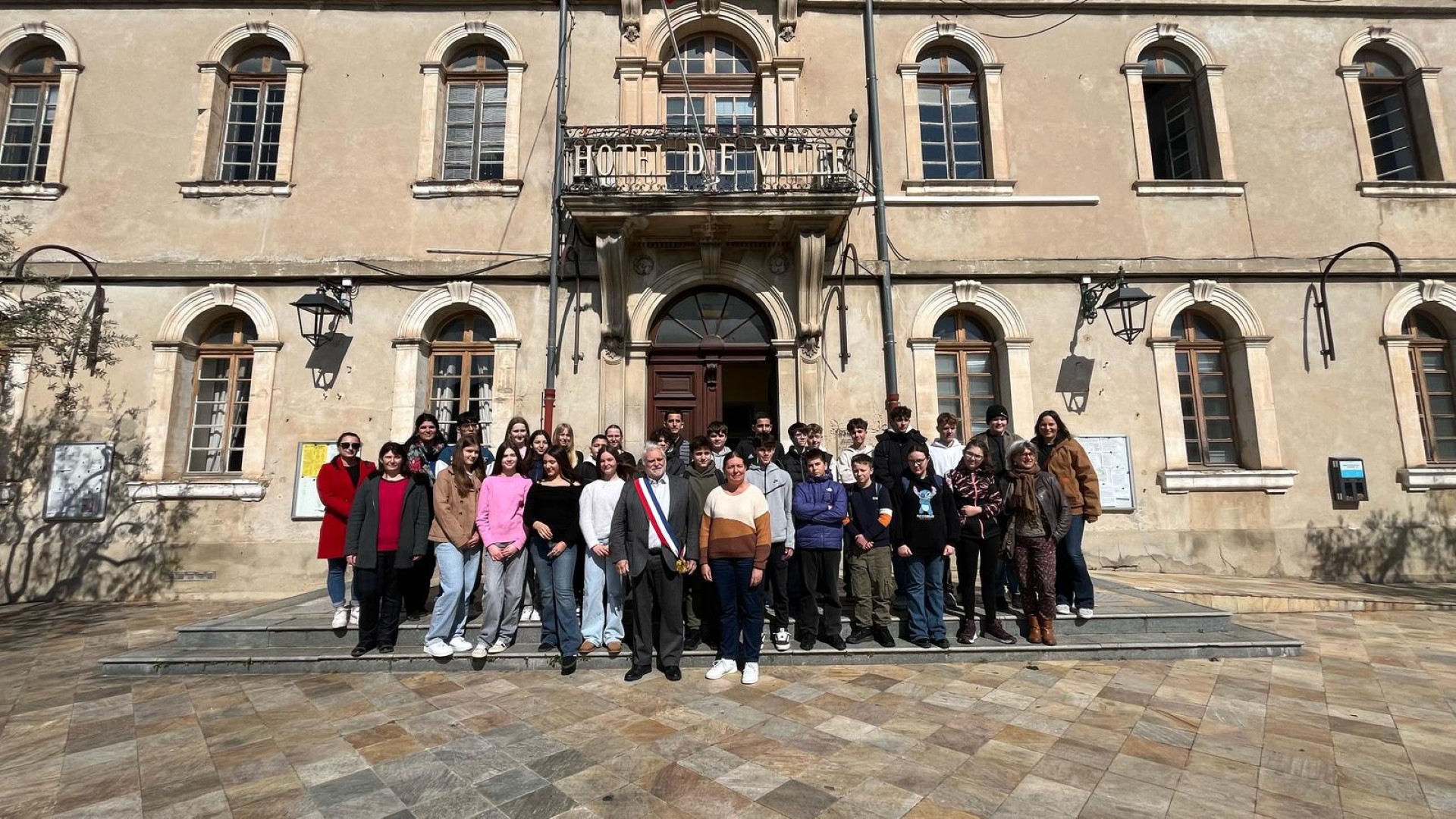 In diesen Tagen findet der 45. Austausch zwischen der Europaschule Gladenbach und der Partnerschule in Monteux statt. Dreizehn Schülerinnen und Schüler des achten Jahrgangs haben sich gemeinsam mit Frau Dall’Asta und Frau Reichel auf den Weg in die malerische Provence gemacht. In den nächsten acht Tagen wird die Gruppe nicht nur die wunderschöne Region erkunden, sondern auch an einem spannenden Projekt zum Thema „Respekt und Toleranz“ teilnehmen. Heute wurde die Gladenbacher Gruppe im Rathaus von Monteux vom Bürgermeister herzlich empfangen. Als Begrüßungsgeschenk erhielten sie ein T-Shirt mit Monteux-Motiv sowie regionale Süßigkeiten.