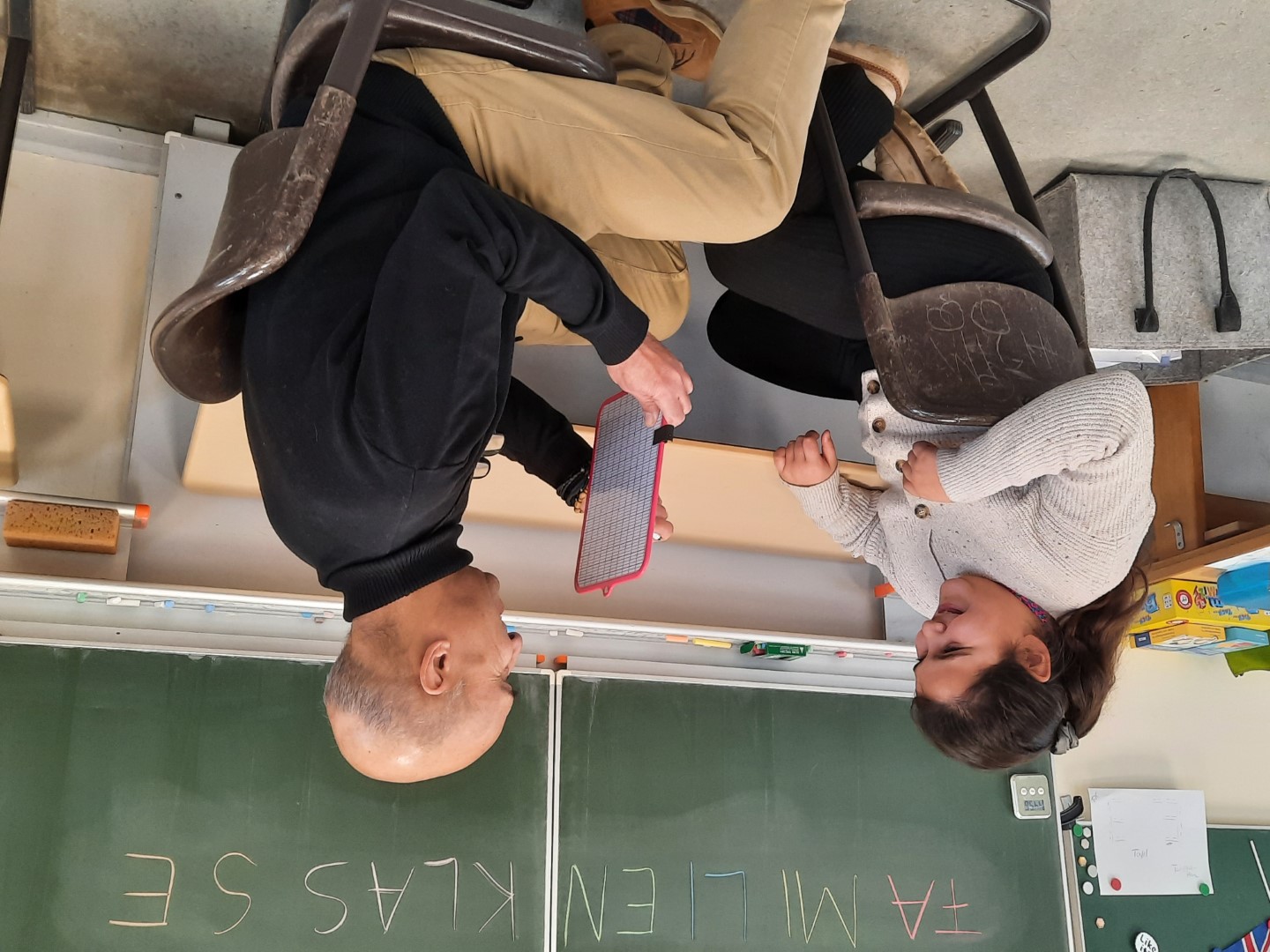 Während der unterschiedlichen Phasen – Frühstück, Gruppenspiele, Lernzeit und Familienübung durfte die Kamera über die Schultern schauen. Einige mutige Kinder berichteten von ihren Erfahrungen an dem etwas besonderen Schultag, an dem ein Elternteil sie wöchentlich donnerstags in die Schule begleitet und dann gemeinsam gearbeitet wird. Eltern erklärten vor laufender Kamera, dass es eine besondere Chance sei, die eigenen Kinder auch einmal im schulischen Kontext zu erleben und so eine sehr exklusive Zeit gemeinsam verbringen zu können.