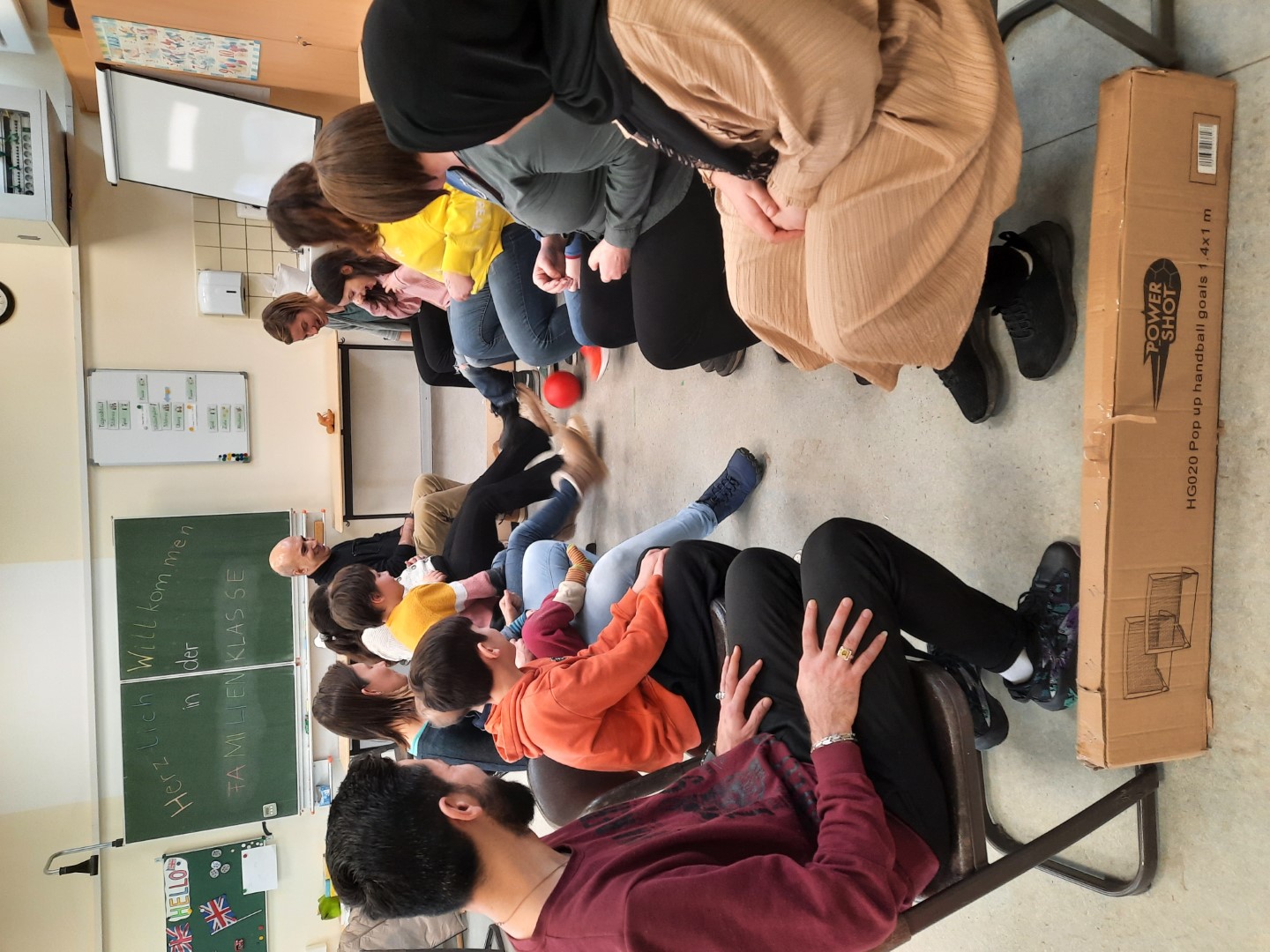 Angeregt durch einen Zeitungsartikel bekam die Familienklasse am 01. Februar 2024 Besuch von RTL Hessen. Das dreiköpfige Team begleitete die Gruppe einen ganzen Vormittag lang, um das Kooperationsprojekt der Freiherr-vom-Stein-Schule, dem Landkreis Marburg-Biedenkopf, dem Staatlichen Schulamt und dem bsj Marburg genau kennenlernen zu können.