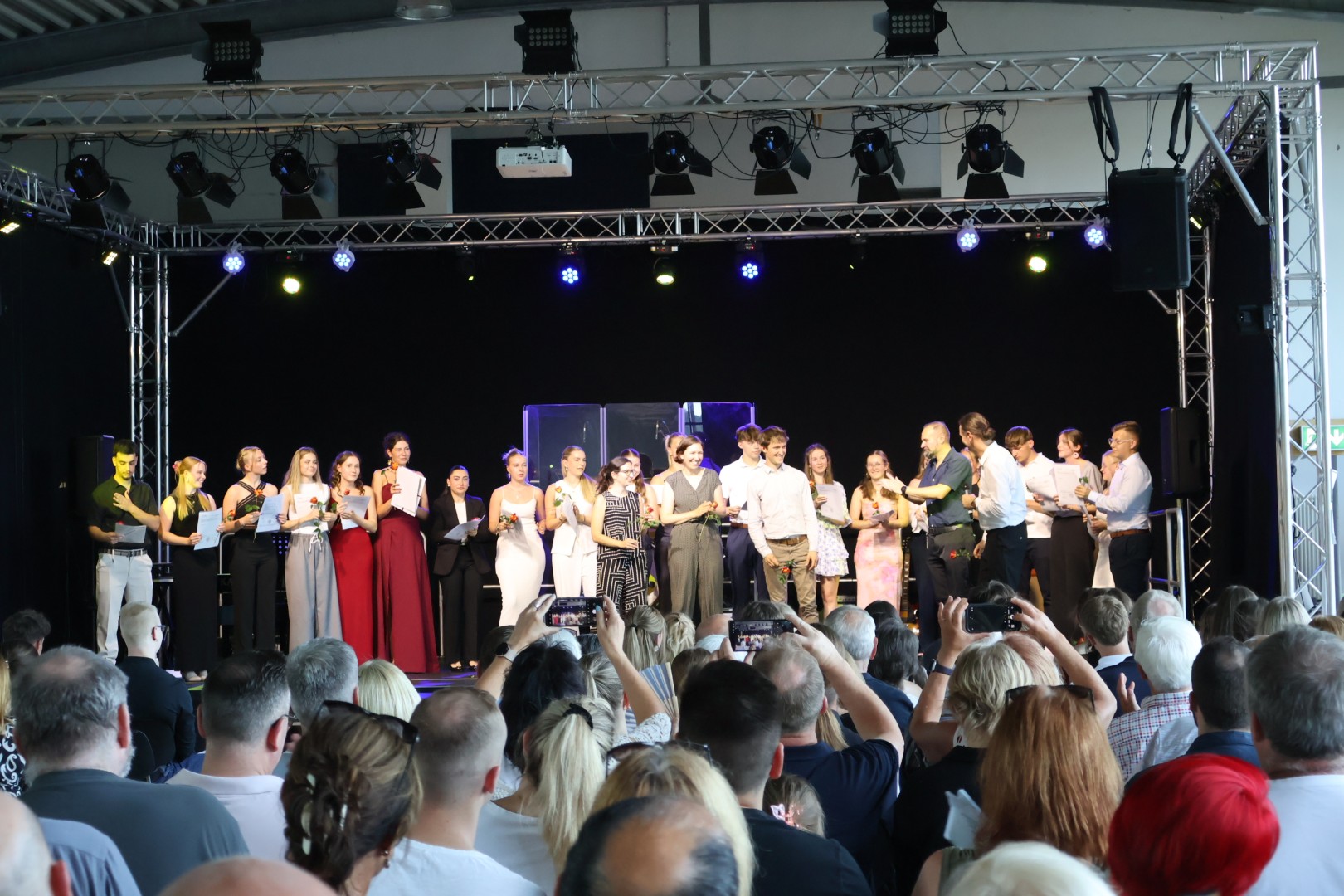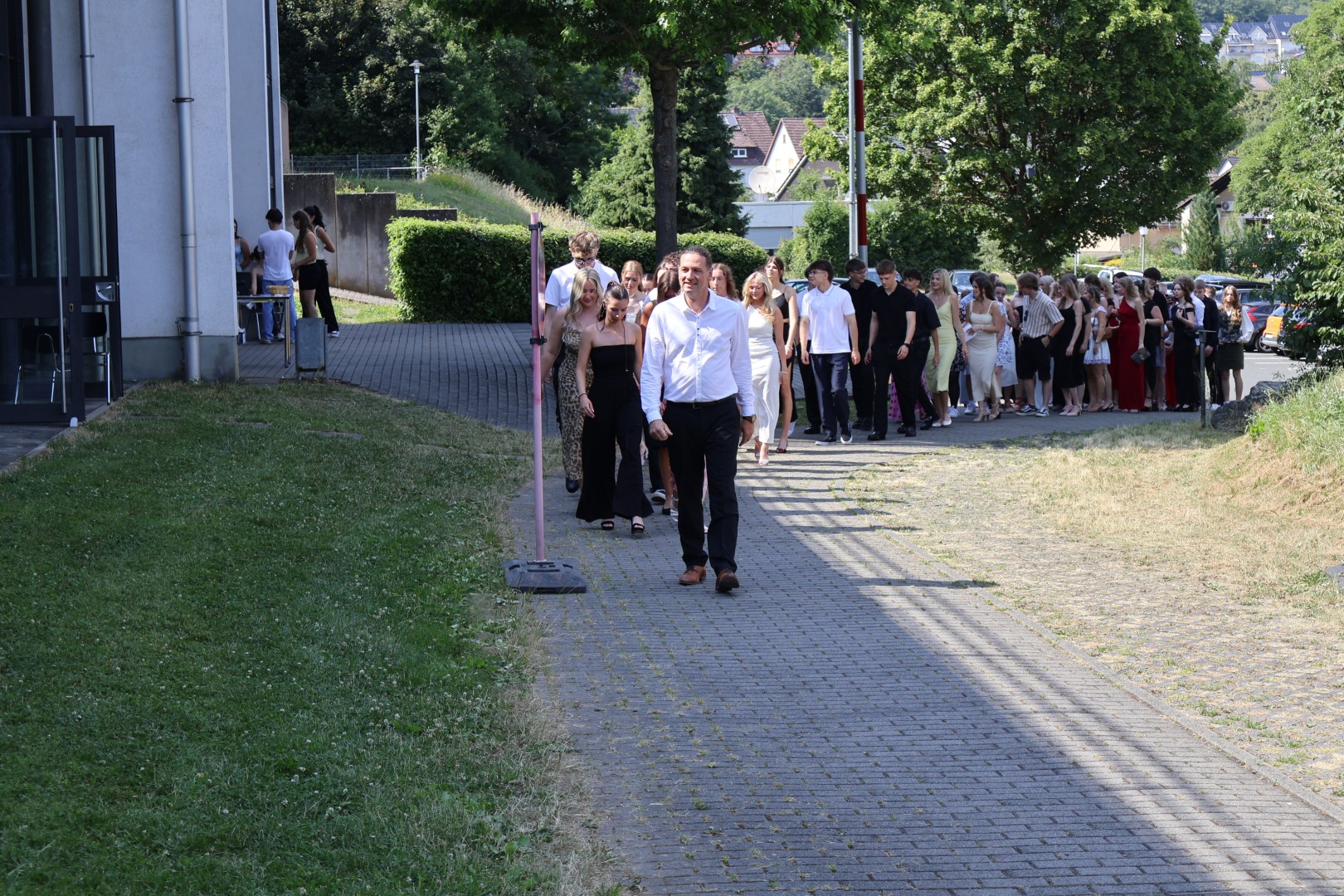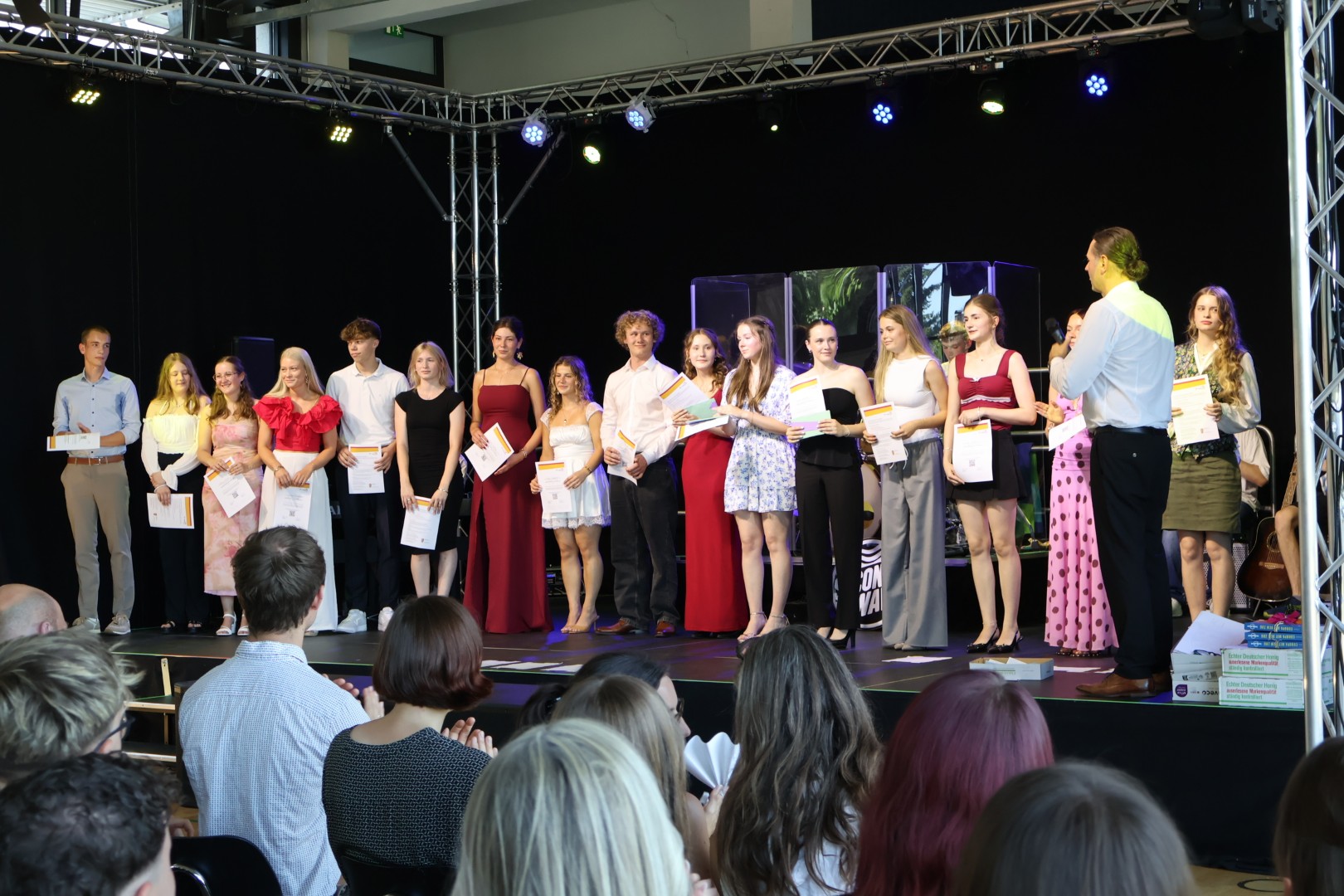 Er betonte, dass diese Zeit für die jungen Erwachsenen eine wertvolle Erfahrung sei. Mit einem Jahrgangsdurchschnitt von 2,22 war der Jahrgang besonders leistungsstark. 31 Schülerinnen und Schülern schlossen mit einer Eins vor dem Komma ab, vier Absolventinnen und Absolventen erreichten die Traumnote 1,0: Zoé Becker, Lara Dechert, Antonia Krag und Oscar Lang.