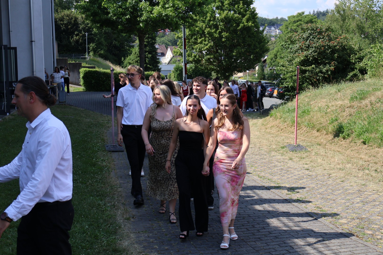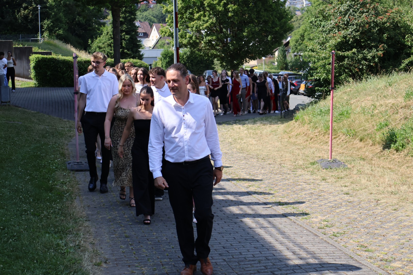 Am 2. Juli 2025 fand in der Kultur- und Sporthalle Gladenbach die feierliche Zeugnisausgabe für die Abiturientinnen und Abiturienten des Jahrgangs 2025 statt. Gemeinsam mit Oberstufenleiter M. Wege zogen die 79 Absolventinnen und Absolventen in die Halle ein, um diesen bedeutenden Meilenstein ihres Bildungsweges zu feiern.