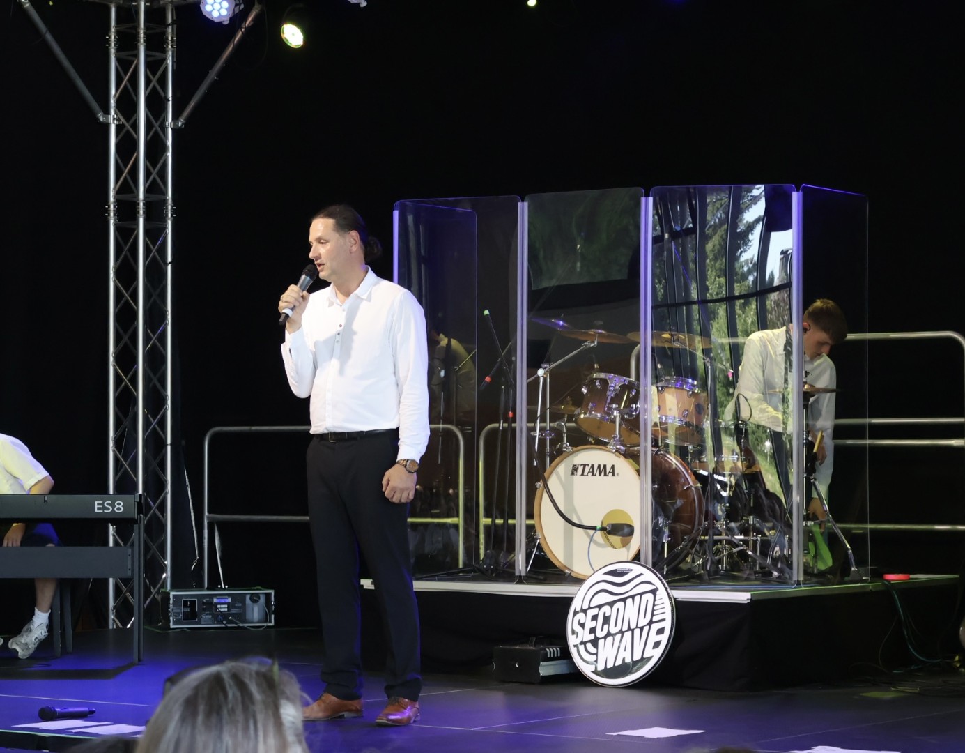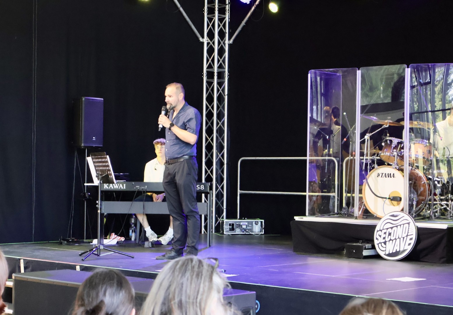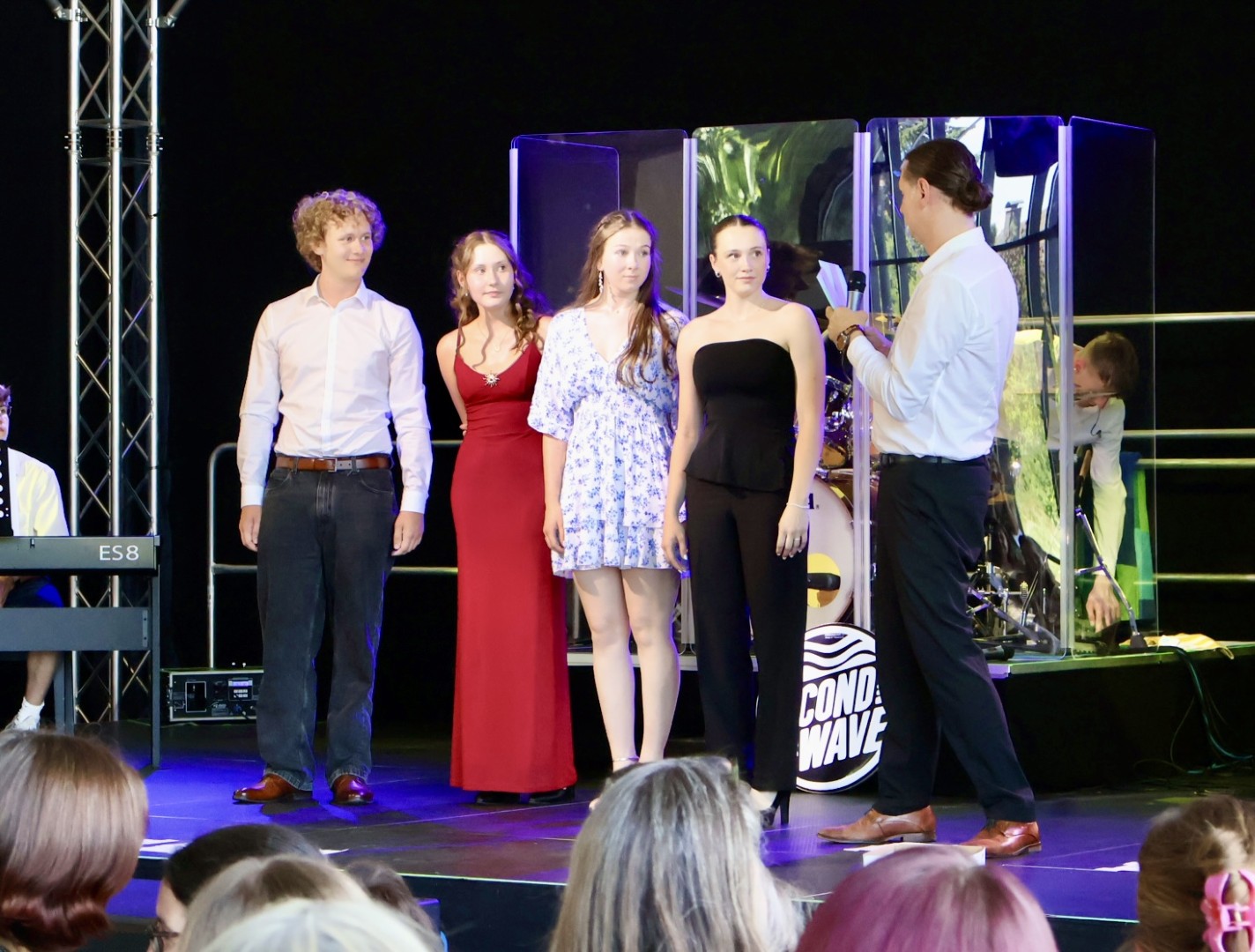 Für eine lockere Stimmung sorgte die Schulband „Second Wave“, die mit drei Songs für gute Laune in der sommerlich aufgeheizten Halle sorgte. Die Band, die seit etwa einem Jahr besteht, begeisterte bereits bei früheren Veranstaltungen wie dem Sommermusikabend. Bei der Abiturfeier sprang Solène ein und präsentierte mit Sängerin Klara und der Band die Lieder „Nur ein Wort“ von Wir sind Helden, „Viva la Vida“ von Coldplay sowie „Schönste Zeit“ von Bosse. Am darauffolgenden Abend fand in der Aue-Eventhalle in Biedenkopf der traditionelle Abiball des Jahrgangs statt.