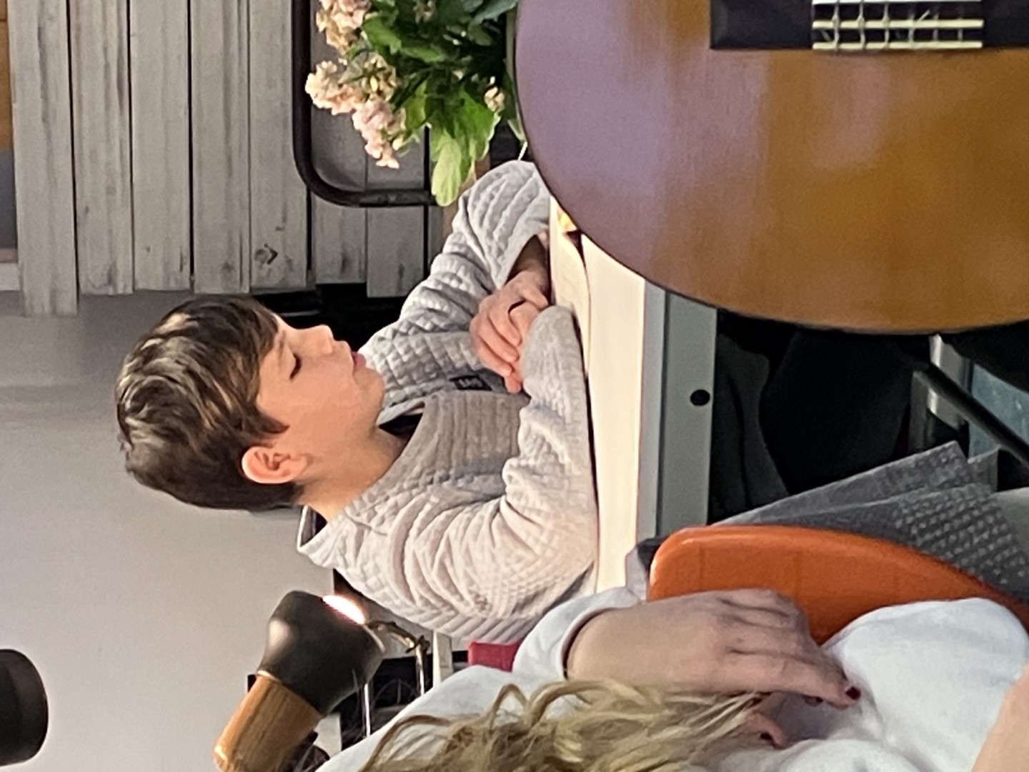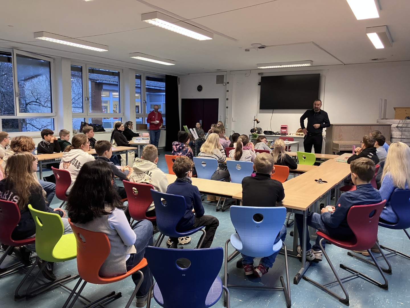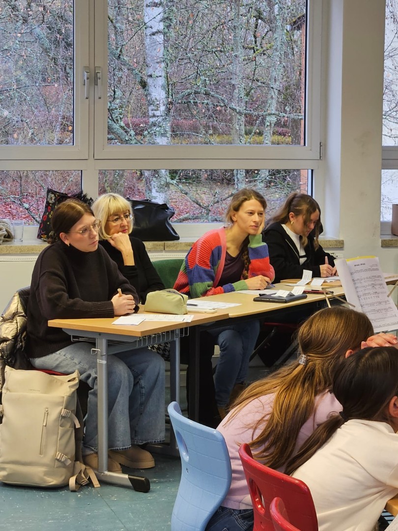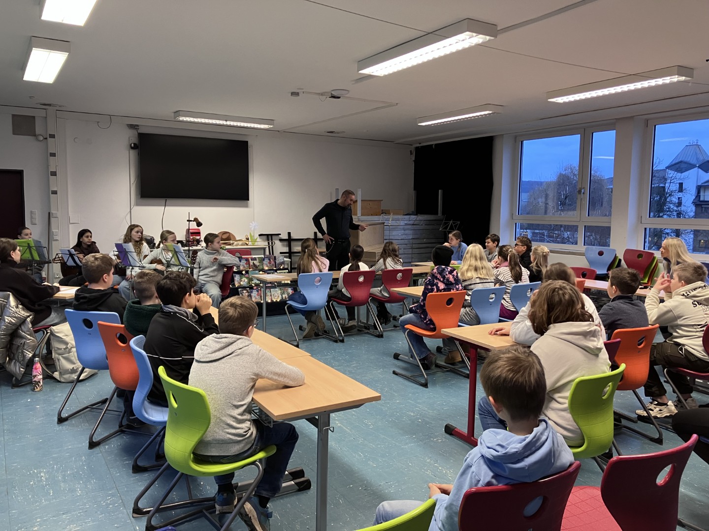 Musikalisch unterstützt wurde die Veranstaltung von vier Gitarrenspielerinnen aus dem 6. Jahrgang. Sie sorgten mit den Songs „Applaus, Applaus“ (Sportfreunde Stiller) und „Ich liebe den Frühling“ (S. Sommerland) für eine gemütliche, feierliche Atmosphäre.