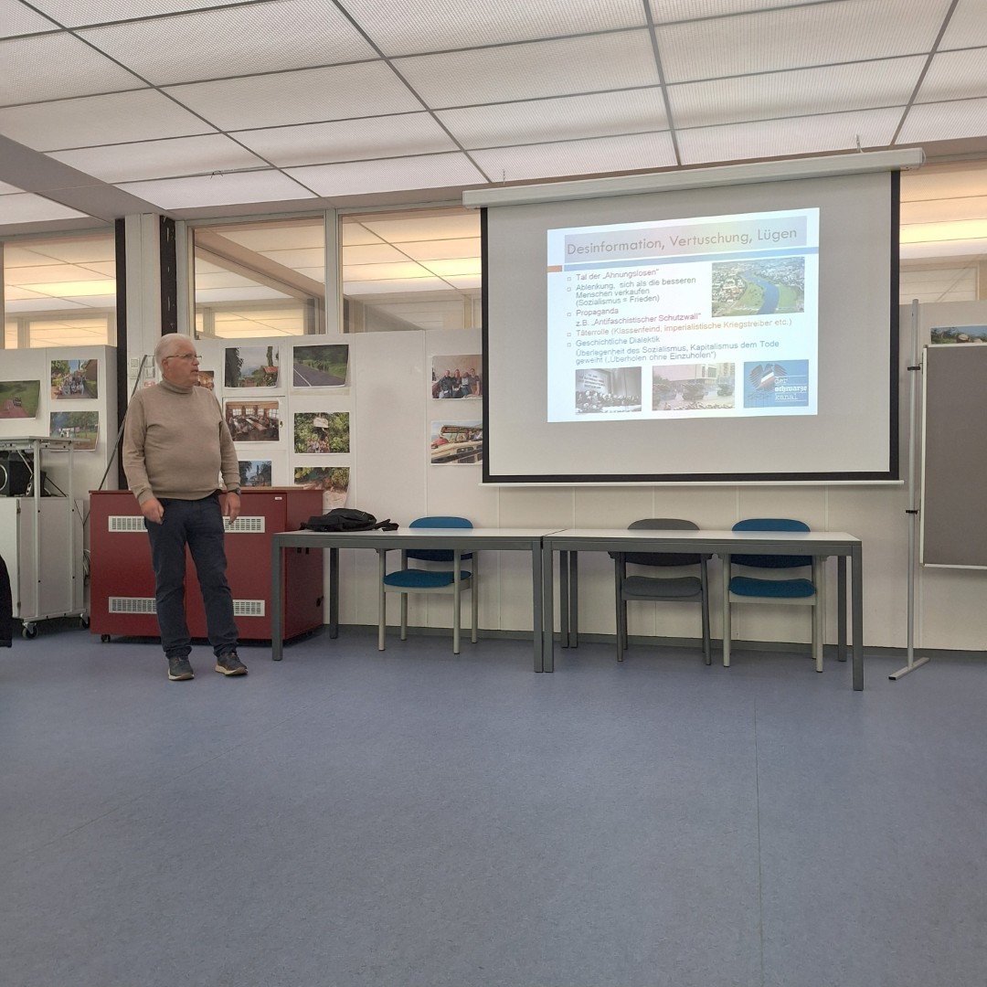 Am 28.10.25 hatten wir den DDR-Zeitzeugen Robert Krug zu Gast an unserer Schule. Den Schülerinnen und Schülern der Jahrgangsstufe 10G berichtete er von seiner Kindheit und Jugend in der DDR.